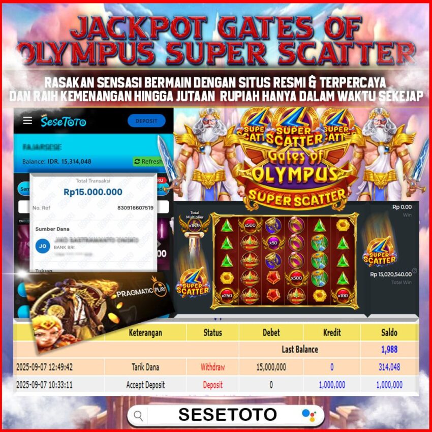 SESE TOTO MENGUCAPKAN SELAMAT KEPADA PEMENANG SLOT OLYMPUS SUPER SCATTER RP 15.000.000 SENIN, 8 SEPT 2025 Selamat kepada User id : FAJAR*** Telah berhasil mendapatkan kemenangan besar pada permainan SLOT SUPER SCATTER kemenangan Sebesar Rp 15,000.000, Setelah mengisi formulir withdraw dengan kurung waktu hanya 5 – 10 menit pihak SESETOTO sudah melakukan transfer kepada pemilik User id dan dana sudah dapat di cairkan oleh pemenang. Bukti pembayaran yang kami berikan merupakan bukti pembayaran yang SAH / VALID. Ayo segera daftarkan diri anda pada situs terpercaya kami hanya di SESETOTO. Untuk info pendaftaran lebih lanjut boleh hubungi kontak dibawah ini :Telegram: @agensesetoto